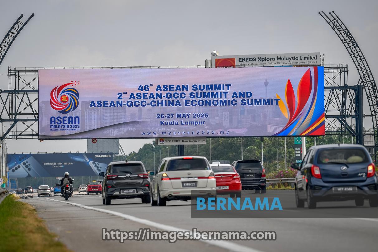 PUTRAJAYA, 21 Mei -- Laluan dari Lapangan Terbang Antarabangsa Kuala Lumpur (KLIA) ke pusat bandar raya ibu negara kini dihiasi dengan gegantung (banner) dan papan iklan bertemakan ASEAN, seolah-olah menyambut dan mengalu-alukan ketibaan para pemimpin serta delegasi sempena Sidang Kemuncak ASEAN 2025.