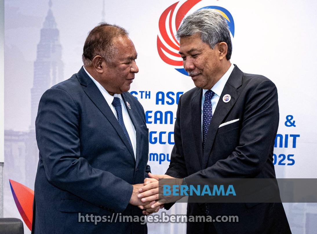 KUALA LUMPUR, May 25 -- Foreign Minister Datuk Seri Mohamad Hasan (right) shakes hands with with his counterpart from Timor-Leste, Bendito dos Santos Freitas, ahead of their bilateral meeting at the Kuala Lumpur Convention Centre today.