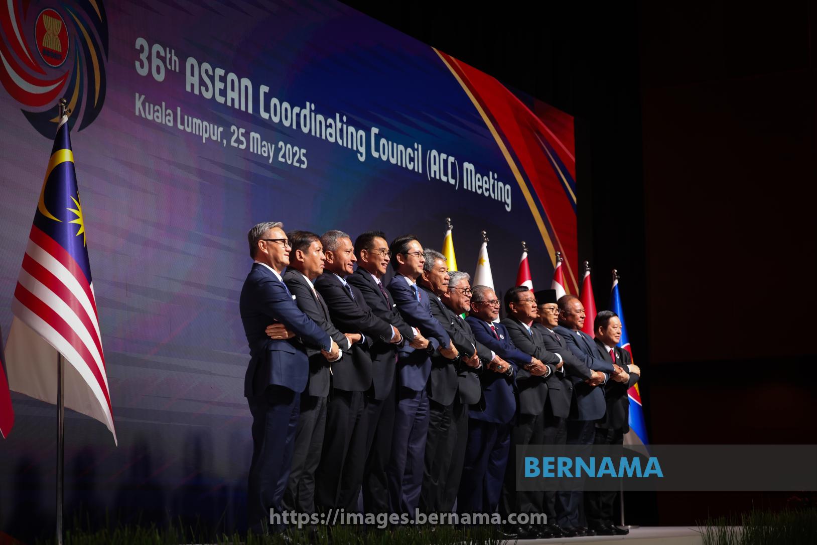 KUALA LUMPUR, May 25 -- Foreign Minister Datuk Seri Mohamad Hasan joins his counterparts from ASEAN member states, the Foreign Minister of Timor-Leste, and the ASEAN Secretary-General in the traditional ASEAN cross-armed handshake during a photo session at the 36th ASEAN Coordinating Council (ACC) Meeting, held in conjunction with the 46th ASEAN Summit at the Kuala Lumpur Convention Centre (KLCC) today.