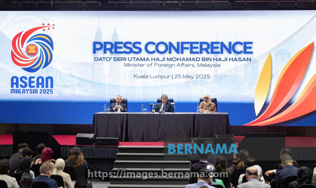 KUALA LUMPUR, May 25 -- Foreign Minister Datuk Seri Mohamad Hasan (centre) speaks during a press conference in conjunction with the 46th ASEAN Summit at the Kuala Lumpur Convention Centre today.
