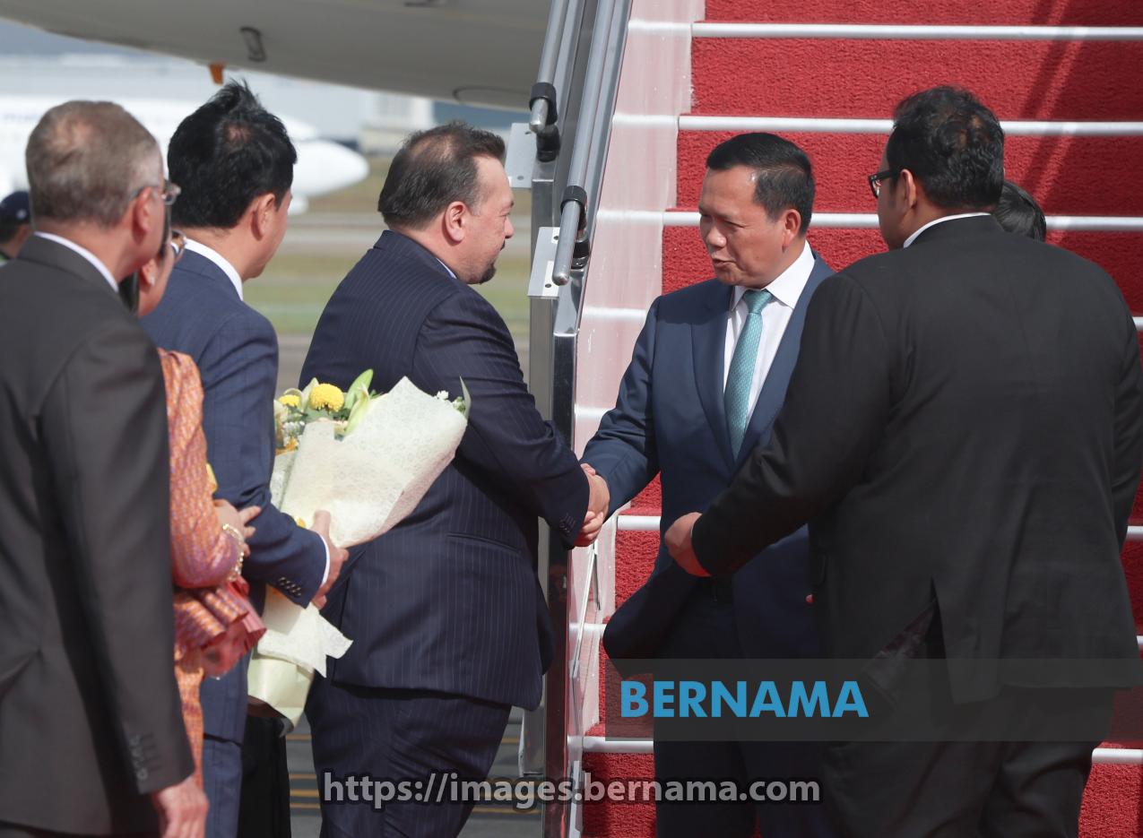 SEPANG, May 25 -- Cambodian Prime Minister Hun Manet (right) shakes hands with Finance Minister II Datuk Seri Amir Hamzah Azizan upon arriving at the Bunga Raya Complex, Kuala Lumpur International Airport (KLIA) here today.