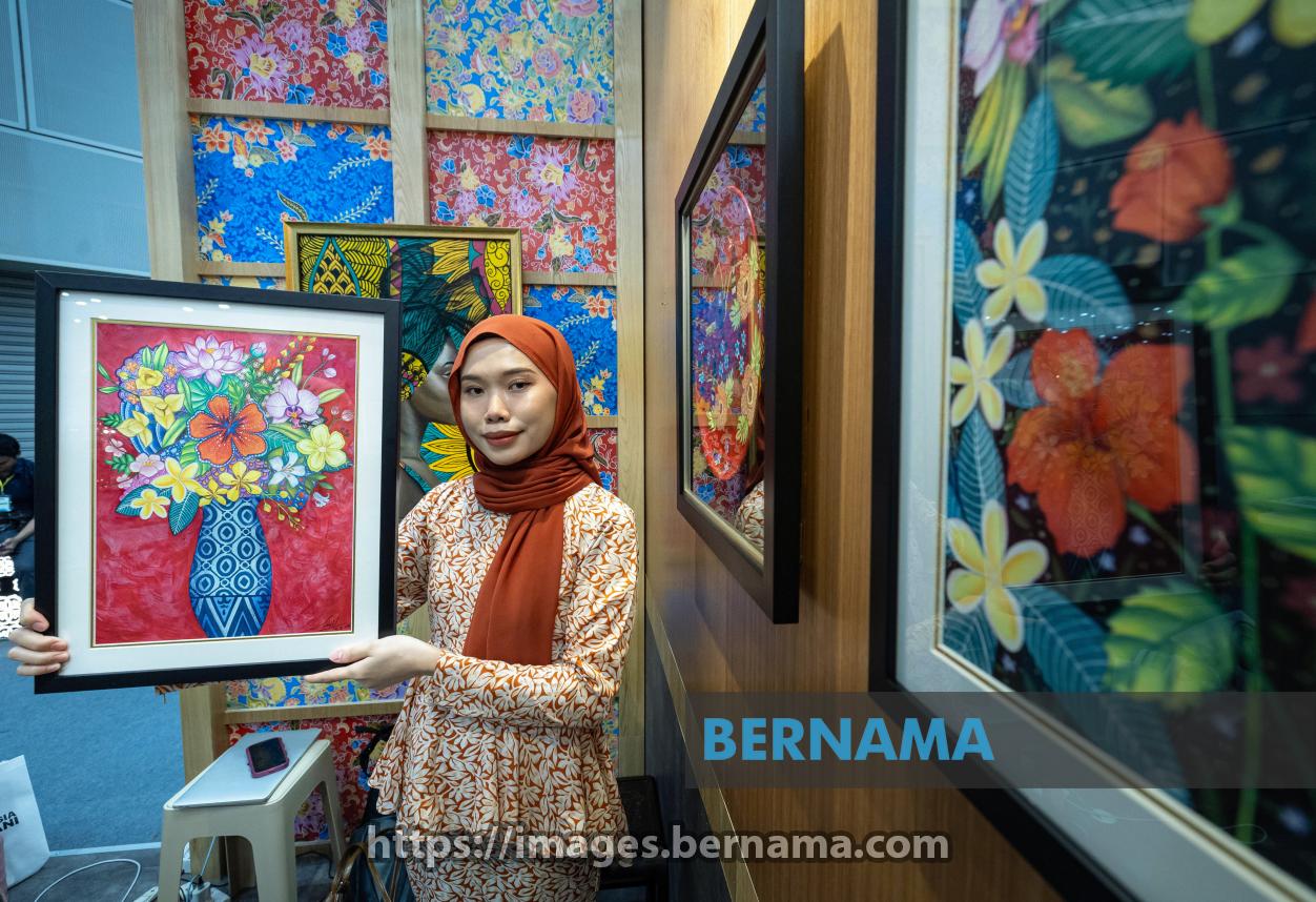 KUALA LUMPUR, 25 Mei -- Wanita Orang Kurang Upaya (OKU) Nur Amiratul Farahin Ab Rahman, 28, menunjukkan lukisan kanvas bertemakan bunga-bungaan ASEAN ketika ditemui pada pameran bersempena dengan Sidang Kemuncak ASEAN ke-46 di Pusat Konvensyen Kuala Lumpur (KLCC), di sini.