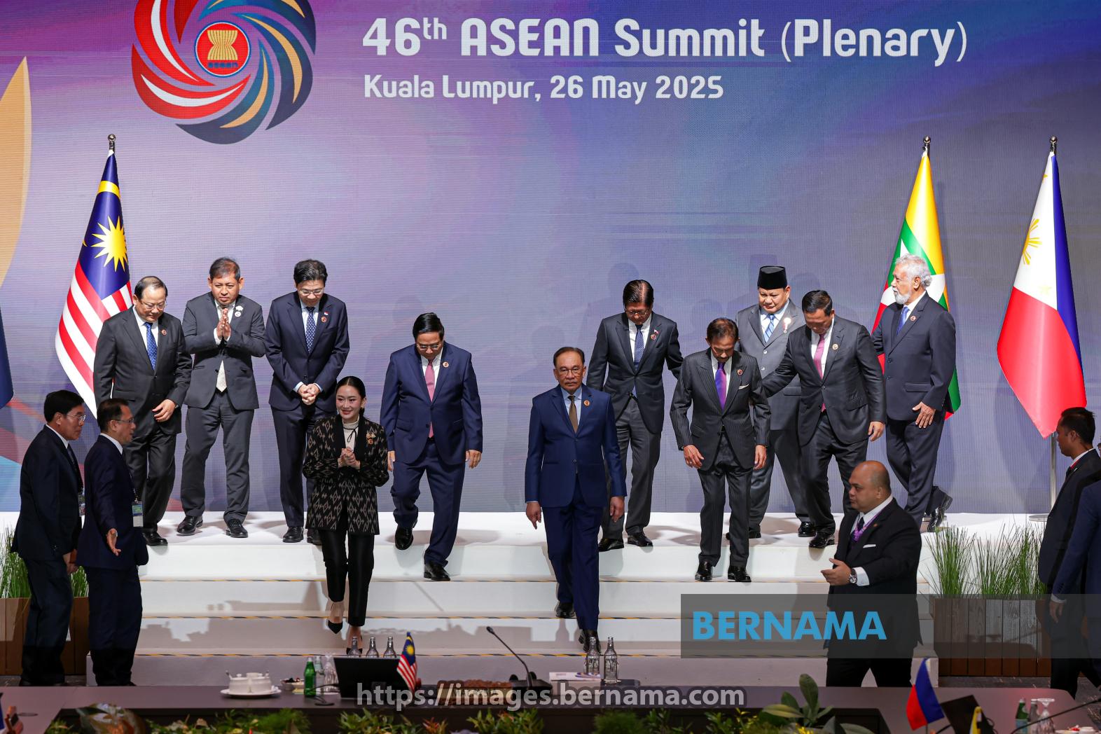 KUALA LUMPUR, May 26 -- Prime Minister Datuk Seri Anwar Ibrahim and other ASEAN leaders step off the stage to begin the plenary session of the 46th ASEAN Summit at the Kuala Lumpur Convention Centre today.