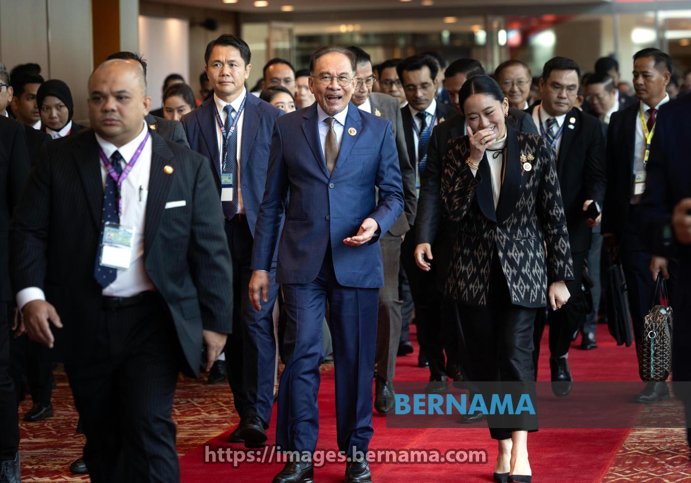 KUALA LUMPUR, May 26 -- Prime Minister Datuk Seri Anwar Ibrahim shares a light moment with Thai Prime Minister, Paetongtarn Shinawatra as they make their way to the retreat session of the 46th ASEAN Summit at the Kuala Lumpur Convention Centre today.
