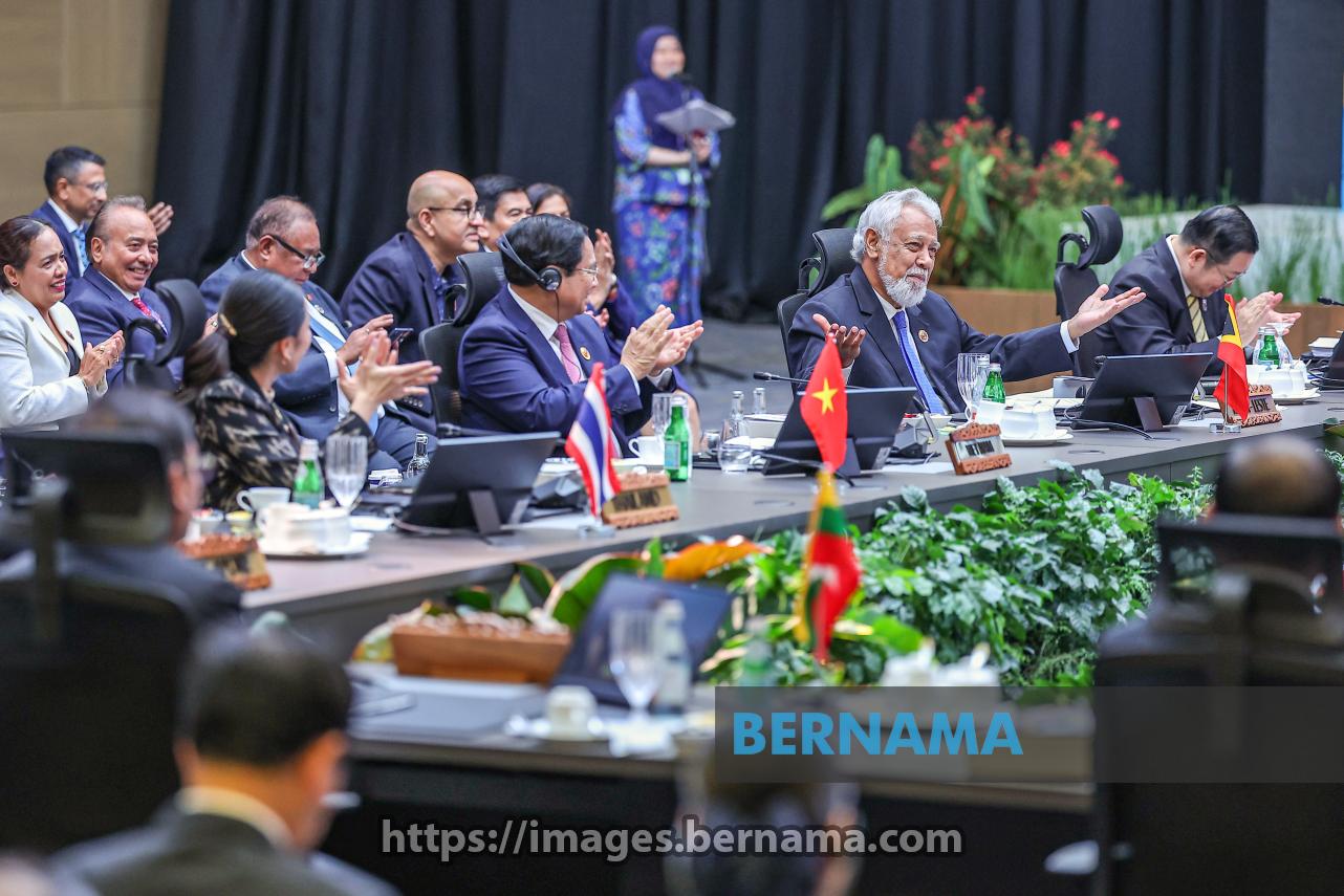 KUALA LUMPUR, May 26 -- Prime Minister of the Democratic Republic of Timor-Leste, Kay Rala Xanana Gusmão (second from right), gestures while delegates applaud during the plenary session of the 46th ASEAN Summit at the Kuala Lumpur Convention Centre today.