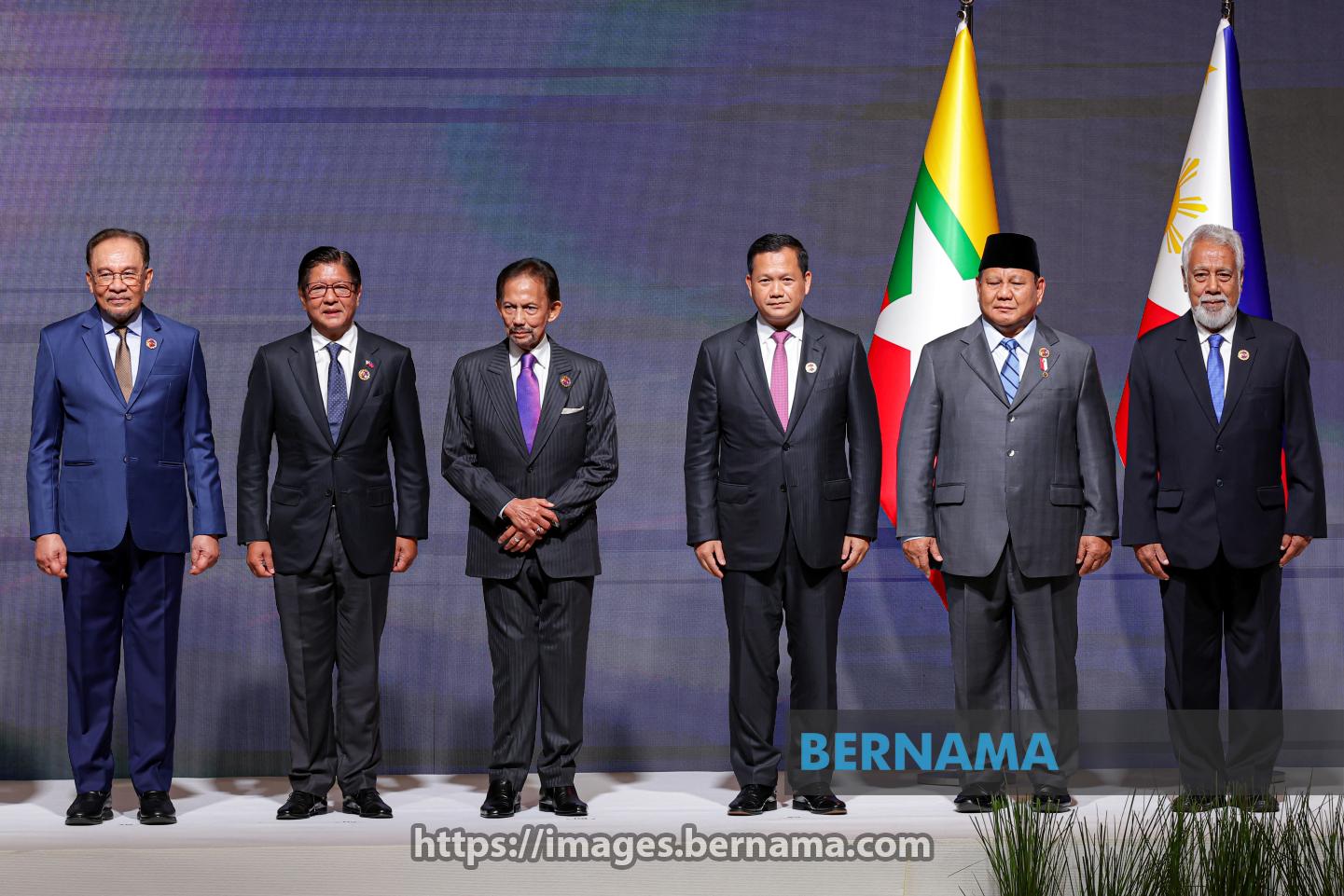 KUALA LUMPUR, May 26 -- Prime Minister Datuk Seri Anwar Ibrahim (left) poses with (from right) Timor-Leste Prime Minister Kay Rala Xanana Gusmao, Indonesian President Prabowo Subianto, Cambodian Prime Minister Hun Manet, the Sultan of Brunei Sultan Hassanal Bolkiah and Philippine President Ferdinand Marcos Jr prior to the plenary session of the 46th ASEAN Summit at the Kuala Lumpur Convention Centre, today.