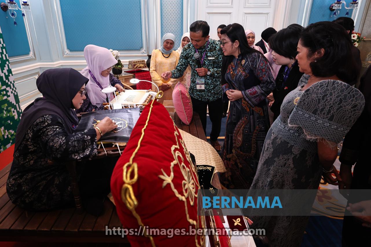 PUTRAJAYA, May 26 -- Spouses of ASEAN leaders observe the process of weaving gold thread during a luncheon in honour of the spouses of heads of state and government, held today at the Seri Perdana Complex in conjunction with the 46th ASEAN Summit at the Kuala Lumpur Convention Centre.