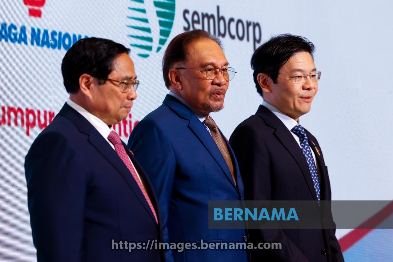 KUALA LUMPUR, May 26 -- Prime Minister Datuk Seri Anwar Ibrahim, Singaporean Prime Minister Lawrence Wong, and Vietnamese Prime Minister Phạm Minh Chính at the document exchange ceremony of a Joint Development Agreement on Renewable Integrated Sustainable Energy (RISE), involving PETRONAS and Tenaga Nasional Berhad (TNB) on the sidelines of the 46th ASEAN Summit at the Kuala Lumpur Convention Centre (KLCC) today.