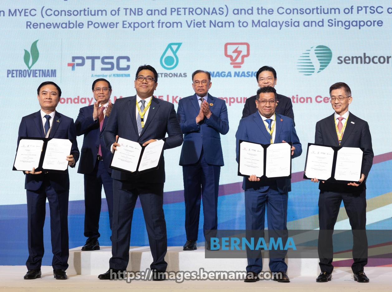 KUALA LUMPUR, May 26 -- Prime Minister Datuk Seri Anwar Ibrahim, Singaporean Prime Minister Lawrence Wong, and Vietnamese Prime Minister Phạm Minh Chính at the document exchange ceremony of a Joint Development Agreement on Renewable Integrated Sustainable Energy (RISE), involving PETRONAS and Tenaga Nasional Berhad (TNB) on the sidelines of the 46th ASEAN Summit at the Kuala Lumpur Convention Centre (KLCC) today.