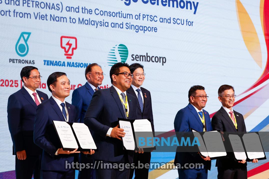 KUALA LUMPUR, May 26 -- Prime Minister Datuk Seri Anwar Ibrahim, Singaporean Prime Minister Lawrence Wong, and Vietnamese Prime Minister Phạm Minh Chính at the document exchange ceremony of a Joint Development Agreement on Renewable Integrated Sustainable Energy (RISE), involving PETRONAS and Tenaga Nasional Berhad (TNB) on the sidelines of the 46th ASEAN Summit at the Kuala Lumpur Convention Centre (KLCC) today.