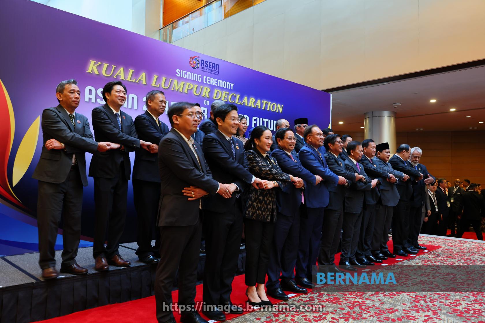 KUALA LUMPUR, May 25 -- Prime Minister Datuk Seri Anwar Ibrahim poses for a group photo with ASEAN leaders and eminent persons of the High-Level Task Force on the ASEAN Community's Post-2025 Vision (HLTF-ACV) ahead of the signing ceremony of the Kuala Lumpur Declaration on ASEAN 2045, at the Plenary Hall during the 46th ASEAN Summit at the Kuala Lumpur Convention Centre today.