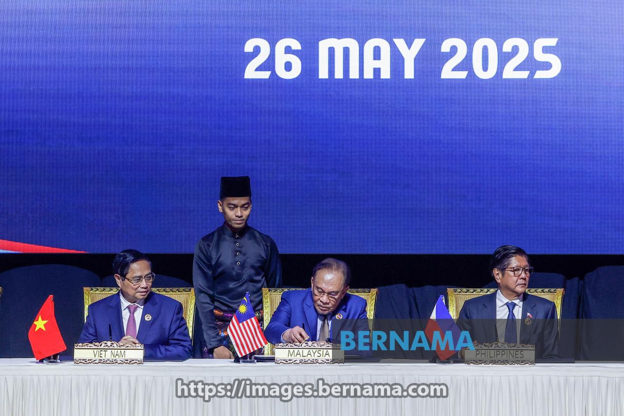 KUALA LUMPUR, May 26 -- Prime Minister Datuk Seri Anwar Ibrahim signs the Kuala Lumpur Declaration on ASEAN 2045: Our Shared Future as ASEAN leaders look on, during the 46th ASEAN Summit at the Kuala Lumpur Convention Centre today.