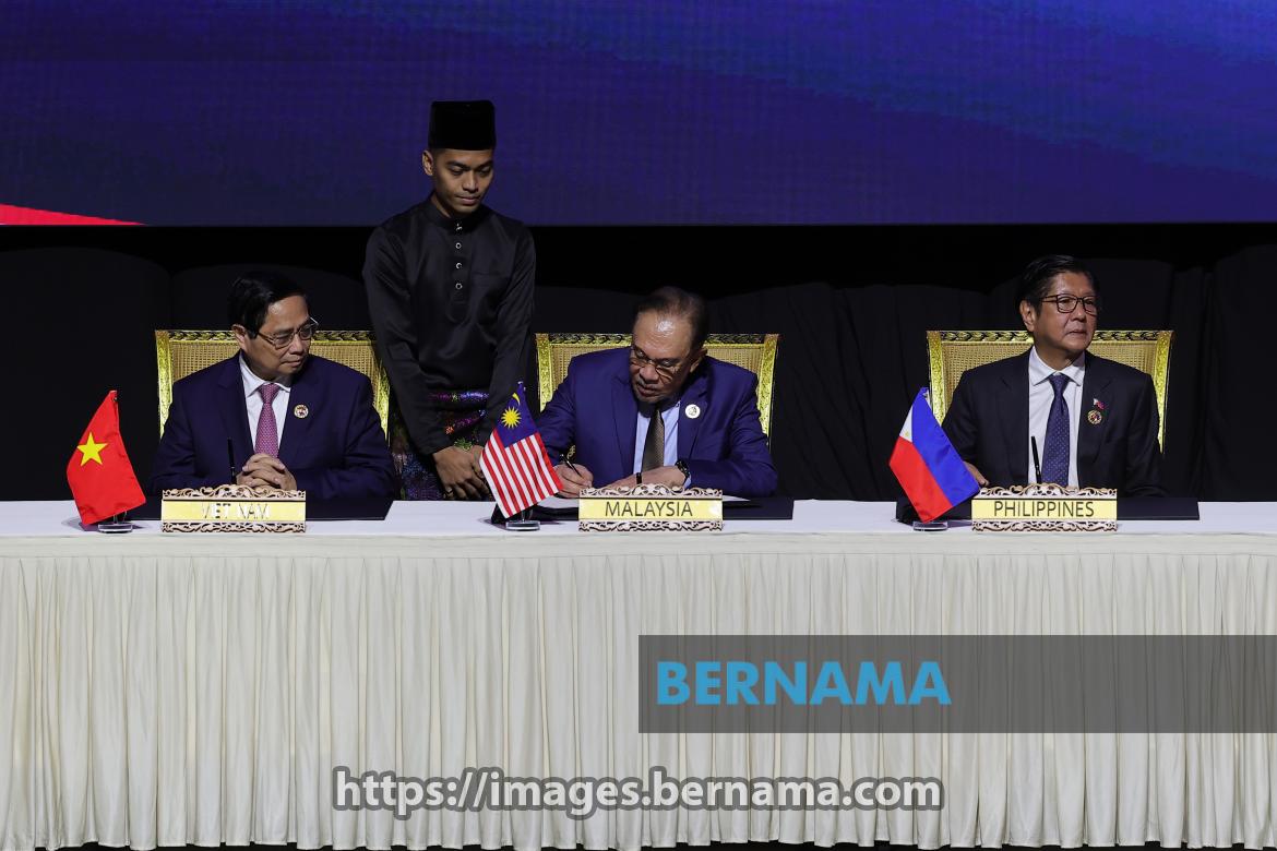 KUALA LUMPUR, May 26 -- Prime Minister Datuk Seri Anwar Ibrahim signs the Kuala Lumpur Declaration on ASEAN 2045: Our Shared Future as ASEAN leaders look on, during the 46th ASEAN Summit at the Kuala Lumpur Convention Centre today.