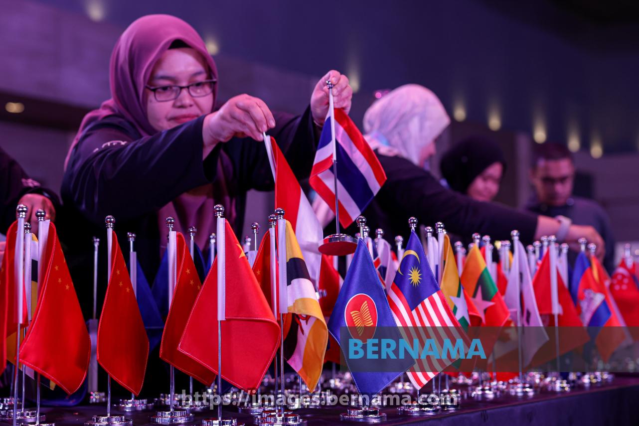 KUALA LUMPUR, Sept 21 -- Staff arranging the flags of ASEAN member states and dialogue partners in preparation for the 57th ASEAN Economic Ministers' Meeting (AEM), scheduled to begin tomorrow at the Malaysia International Trade and Exhibition Centre (MITEC), Kuala Lumpur, today.