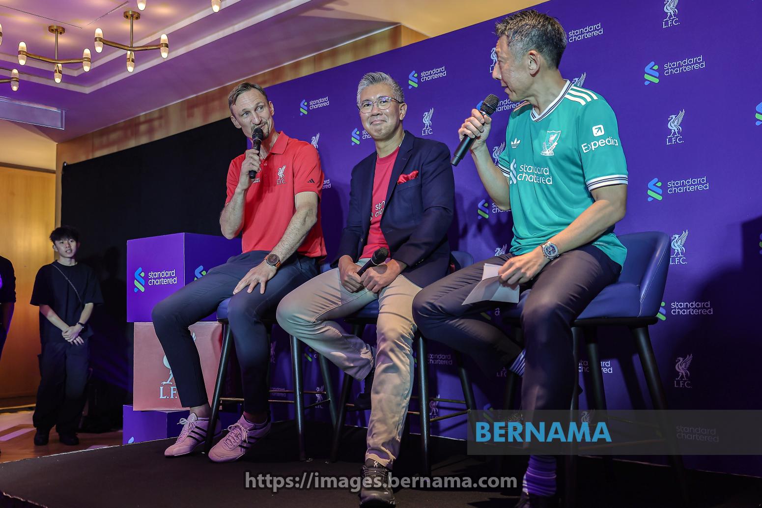 KUALA LUMPUR, 23 Sept -- Menteri Pelaburan, Perdagangan dan Industri Tengku Datuk Seri Zafrul Abdul Aziz (tengah) bersama legenda Liverpool FC Sami Hyypiä (kiri) pada Majlis Makan Malam Majlis Penasihat Perniagaan ASEAN (ASEAN-BAC) di sebuah hotel, malam ini.