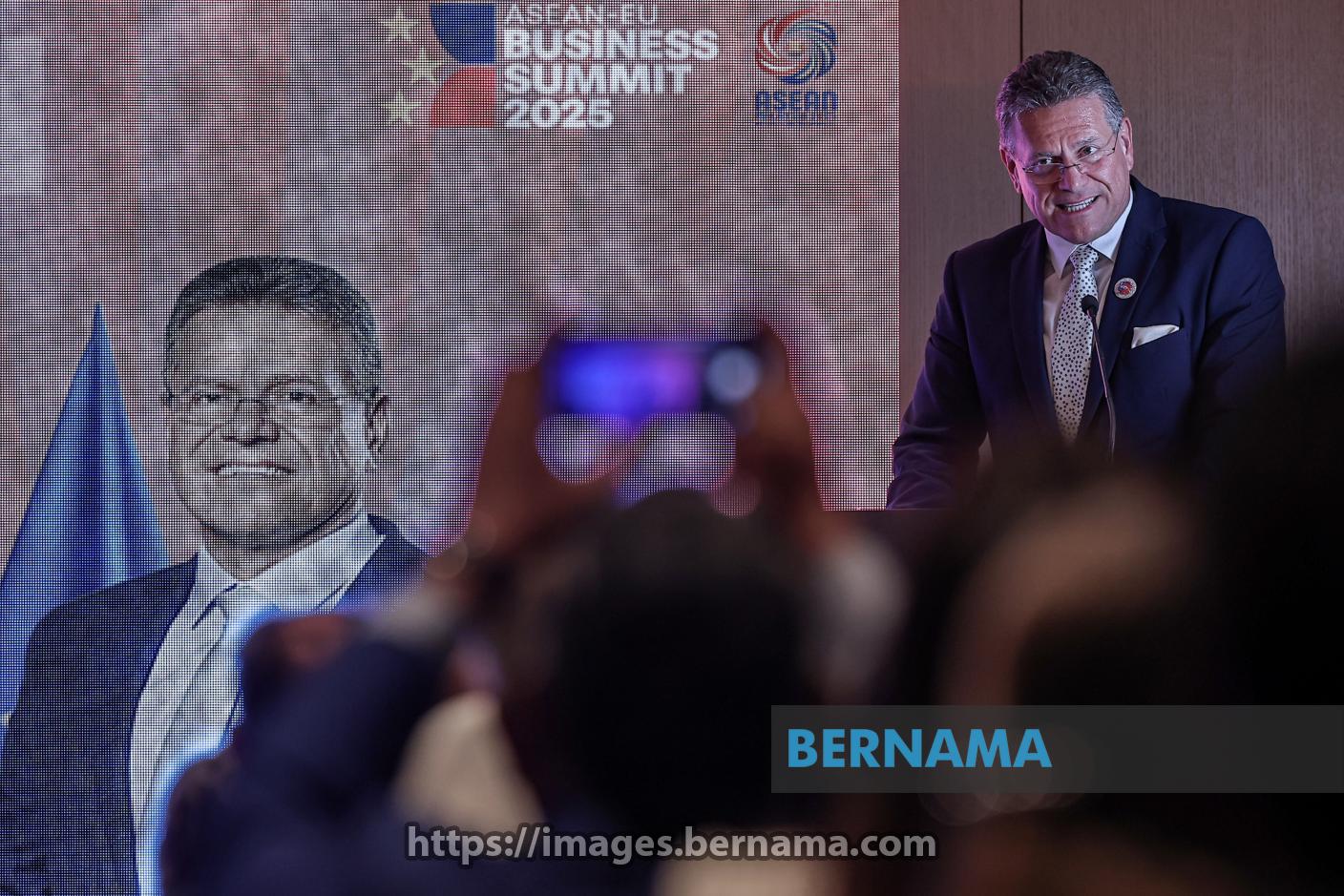 KUALA LUMPUR, Sept 25 -- European Commissioner for Trade and Economic Security, Maros Sefcovic delivering a keynote address at the ASEAN-EU Business Summit 2025 here, today.