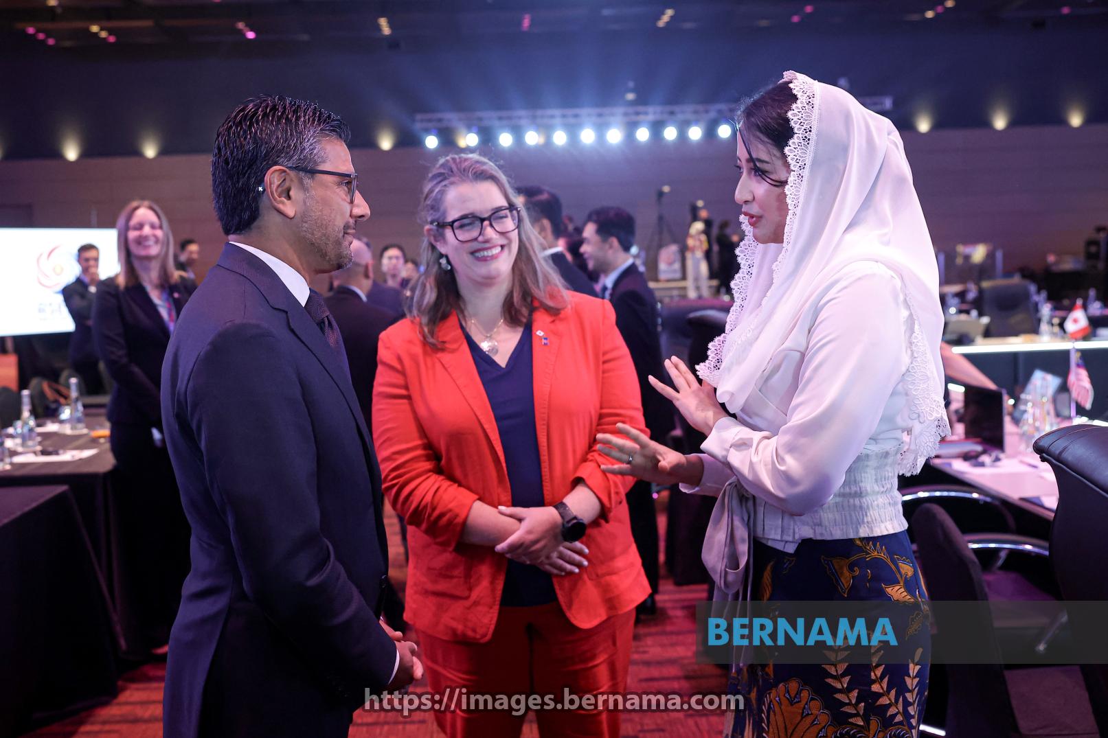 KUALA LUMPUR, Sept 26 -- Canada's Parliamentary Secretary to the Minister of International Trade and Parliamentary Secretary to the Secretary of State (International Development) Yasir Naqvi together with Indonesia's Deputy Minister of Trade Dyah Roro Esti Widya Putri during the 14th ASEAN Economic Ministers' (AEM)-Canada Consultation, held in conjunction with the 57th AEM Meeting and Related Meetings at Malaysia International Trade and Exhibition Centre (MITEC) today.