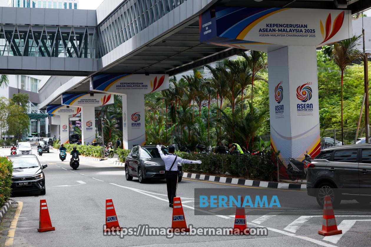 KUALA LUMPUR, Oct 23 -- Corporal Mahamad Asri Mohd Zamri from the Pasir Mas District Police Headquarters controls security along Jalan Perak during the 47th ASEAN Summit and Related Summits, taking place from Oct 26 to 28 at the Kuala Lumpur Convention Centre, here today.
