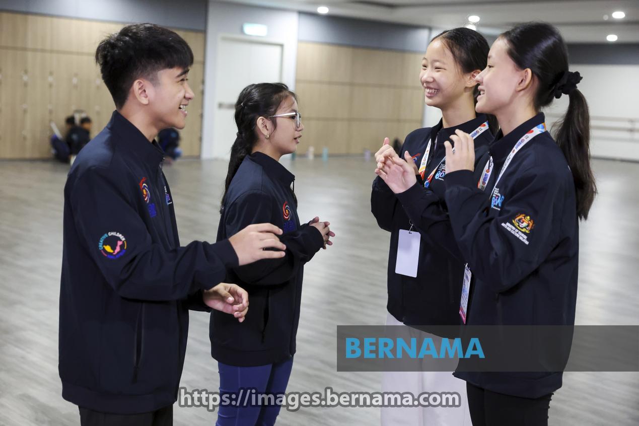 KUALA LUMPUR, Oct 23 -- Dancers from Singapore, Zhang Ziyi, 12, (second right) and Hillary Oon, 12, (right) chat with dancers from the Philippines, Enrique Paolo A. Herrera, 14, (left) and Yzeiah Jamila A. Ringor, 14, (second left), during the Best of ASEAN Performing Arts (BoAPA) 2025 performance rehearsal at the Seri Angkasa Auditorium, RTM, in conjunction with the 47th ASEAN Summit and Related Summits, scheduled to take place from Oct 26 to 28 at the Kuala Lumpur Convention Centre.