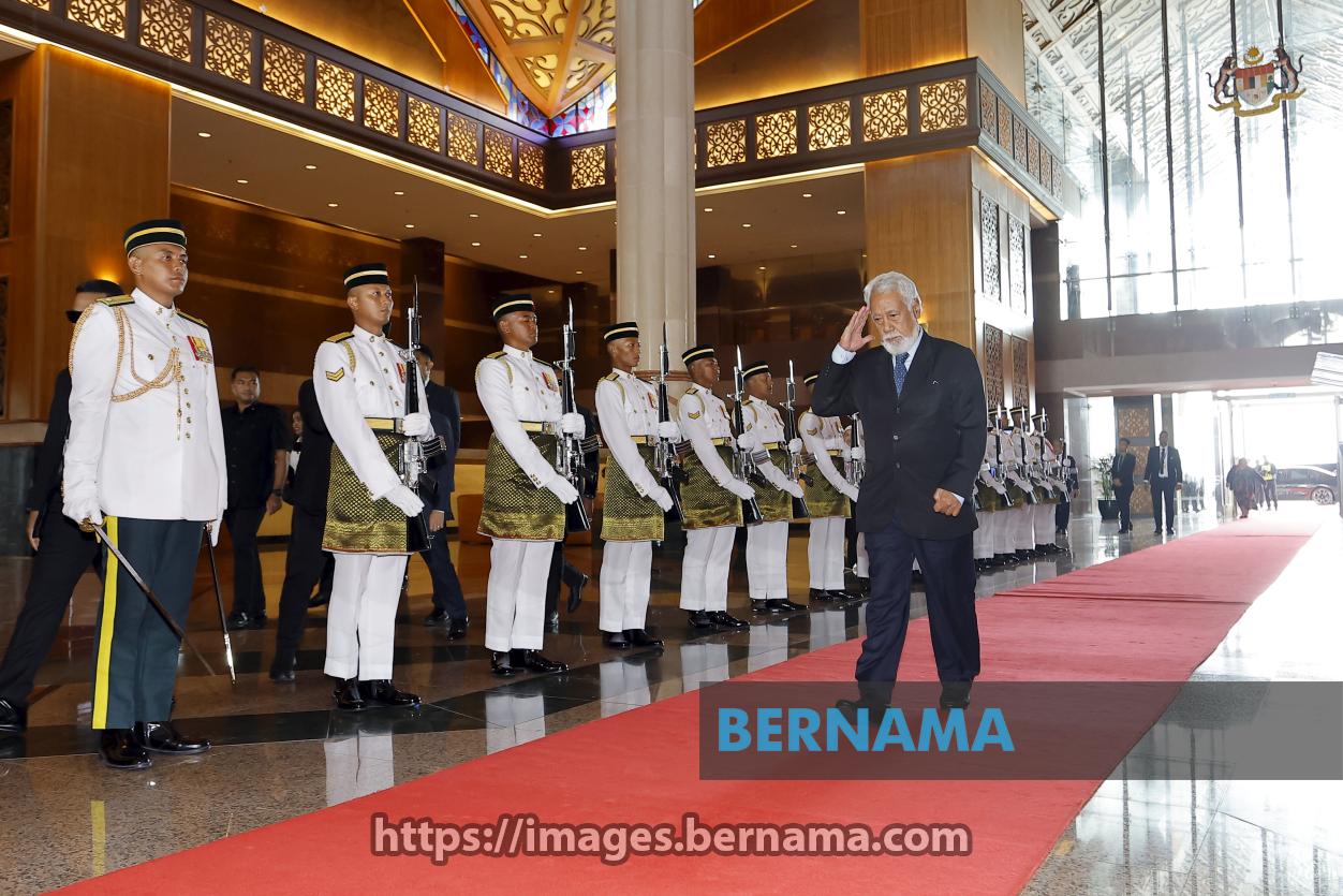 SEPANG, Oct 24 -- Timor-Leste Prime Minister Kay Rala Xanana Gusmão, who arrives in Malaysia ahead of the 47th ASEAN Summit and Related Summits, inspects a guard of honour comprising two officers and 26 personnel from the First Battalion of the Royal Malay Regiment, led by Captain Mohd Masrur Hidayat Masri, at the Bunga Raya Complex, Kuala Lumpur International Airport (KLIA) today.