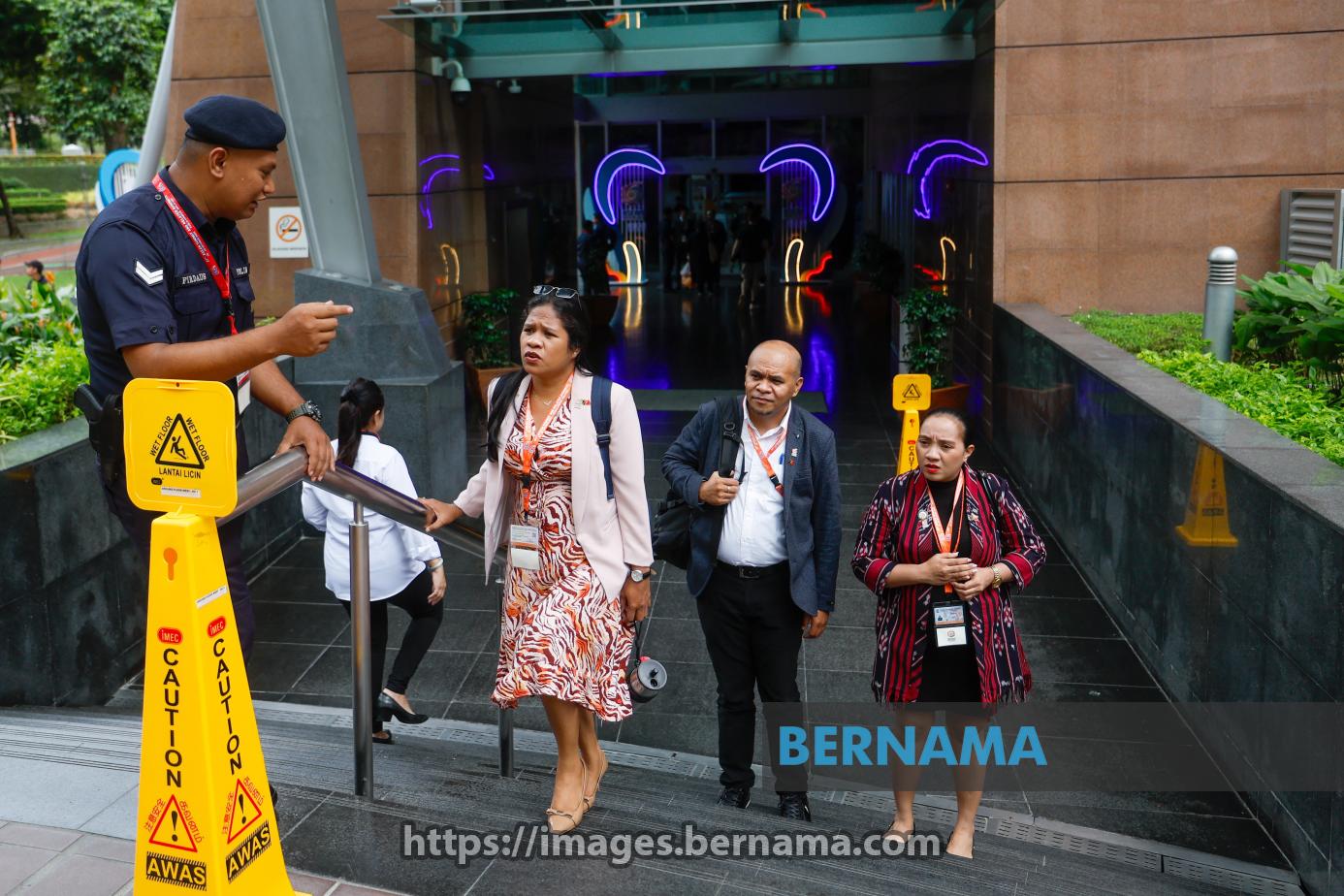 KUALA LUMPUR, Oct 24 -- Some delegates seek directions from police officers on duty at the Kuala Lumpur Convention Centre (KLCC) amid entrance closures for security reasons in conjunction with the 47th ASEAN Summit and Related Summits.