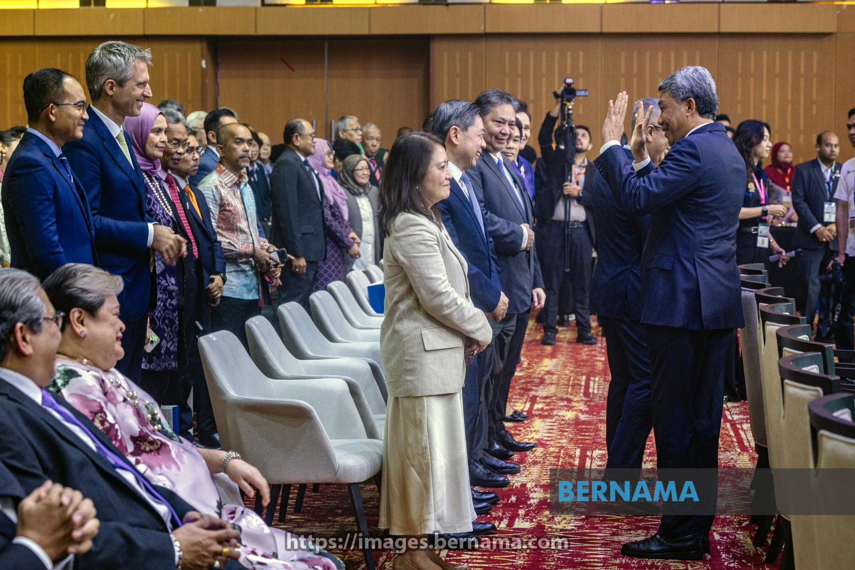 KUALA LUMPUR, 24 Oct -- Foreign Minister Datuk Seri Mohamad Hasan shares a light moment with delegates and guests during the launch of the MSME Excellence Centre for Green Transition in ASEAN in conjunction with the 47th ASEAN Summit, scheduled from Oct 26 to 28 at the Kuala Lumpur Convention Centre.
