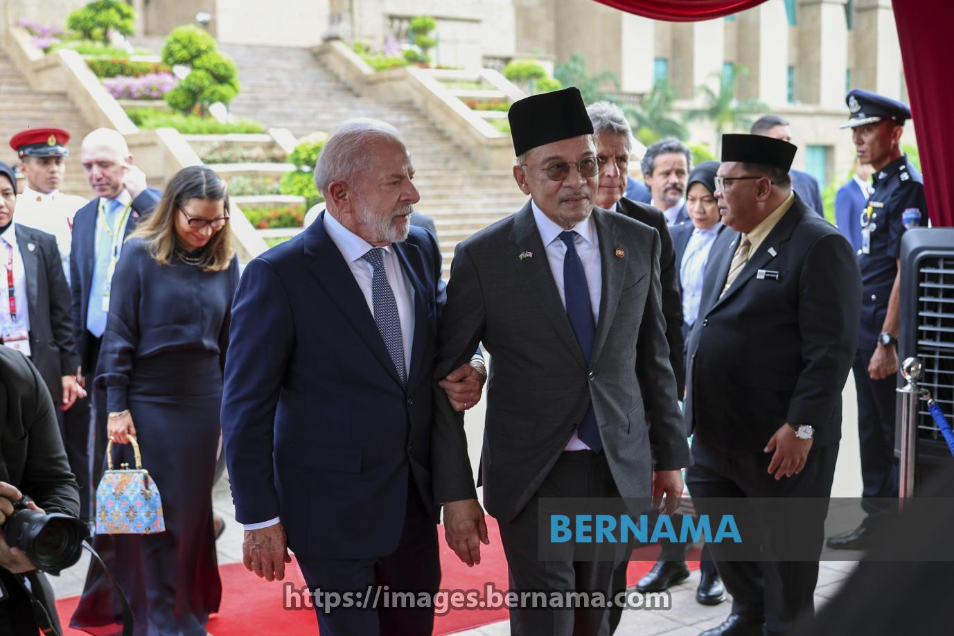 PUTRAJAYA, 25 Okt –- Perdana Menteri Datuk Seri Anwar Ibrahim (dua, kanan) menyambut ketibaan Presiden Brazil Luiz Inácio Lula da Silva di Kompleks Perdana Putra hari ini.