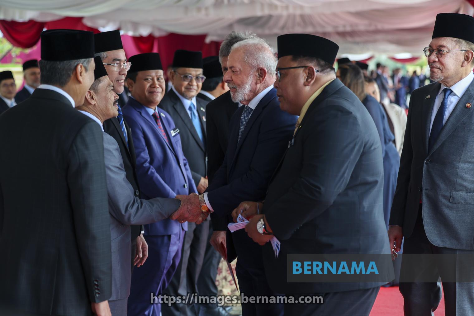 PUTRAJAYA, Oct 25 -- Prime Minister Datuk Seri Anwar Ibrahim (right) introduces Brazilian President Luiz Inácio Lula da Silva (third, right) to the line-up of Ministry Secretaries-General during the official welcome ceremony at the Perdana Putra Complex today.