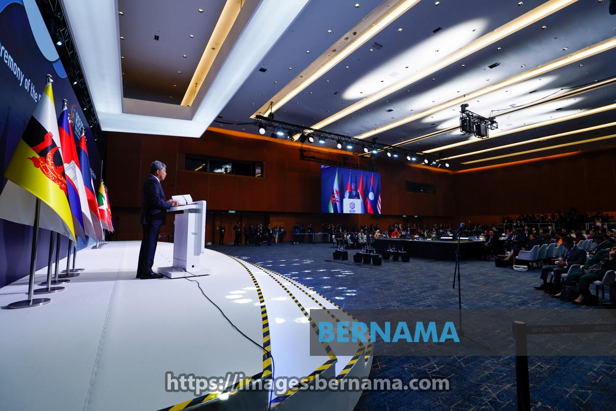 KUALA LUMPUR, Oct 25 -- Foreign Minister Datuk Seri Mohamad Hasan delivers his speech at the ceremony marking Timor-Leste's deposit of its Instruments of Accession to the ASEAN Charter and the Southeast Asia Nuclear-Weapon-Free Zone (SEANWFZ) Treaty on the sidelines of the 47th ASEAN Summit and Related Summits here, today.