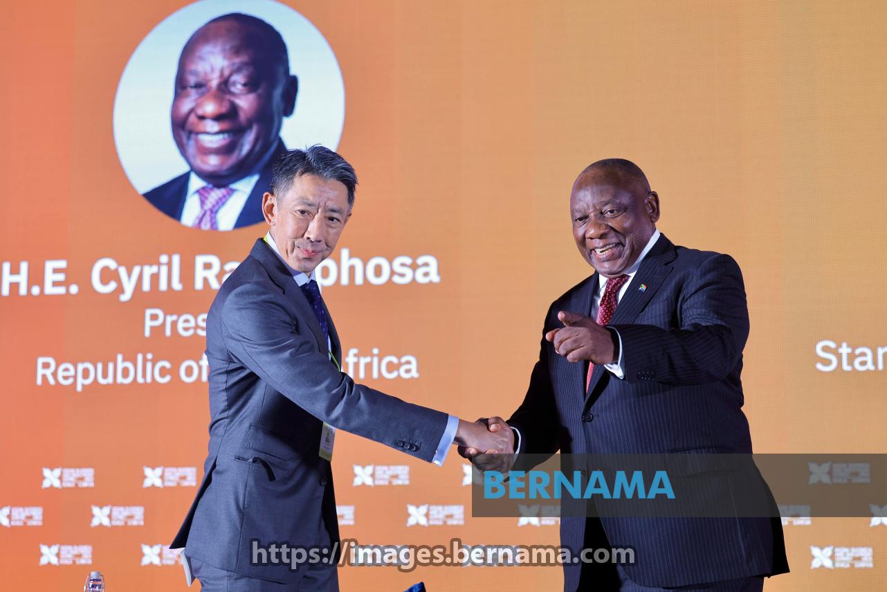 KUALA LUMPUR, Oct 25 -- South African President Cyril Ramaphosa (right) shakes hands with CEO and Board Member of Standard Chartered Bank Malaysia, Mak Joon Nien before the Leaders' Fireside Chat session at the ASEAN Business and Investment Summit (ABIS) 2025, in conjunction with the 47th ASEAN Summit and Related Summits at the Malaysia International Trade and Exhibition Centre (MITEC) today.