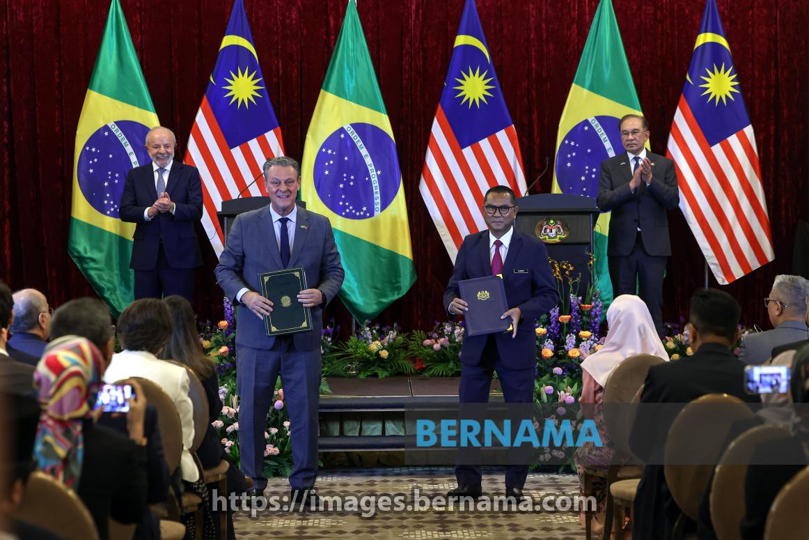 PUTRAJAYA, Oct 25 -- Prime Minister Datuk Seri Anwar Ibrahim (right) and Brazilian President Luiz Inácio Lula da Silva witness the exchange of a letter of intent between the Malaysian Agricultural Research and Development Institute (MARDI) and the Brazilian Agricultural Research Corporation (EMBRAPA) at Seri Perdana Complex today.