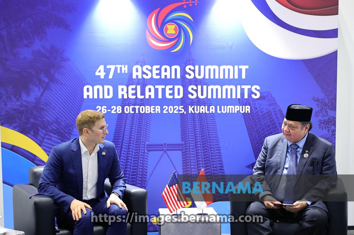 KUALA LUMPUR, Oct 25 -- United States Under Secretary of State for Economic Growth, Energy and the Environment Jacob Helberg with Indonesia's Coordinating Minister for Economic Affairs Airlangga Hartarto (right) during a bilateral meeting in conjunction with the 47th ASEAN Summit and Related Summits at the Kuala Lumpur Convention Centre (KLCC) today.