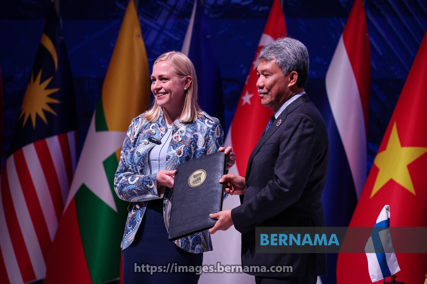 KUALA LUMPUR, Oct 25 -- Foreign Minister Datuk Seri Mohamad Hasan and Finland' s Foreign Minister, Elina Valtonen (left) during the signing ceremony of the Instrument of Accession to the Treaty of Amity and Cooperation in Southeast Asia (TAC) by the Republic of Finland, on the sidelines of the 47th ASEAN Summit and related summits at the Kuala Lumpur Convention Centre (KLCC) today.