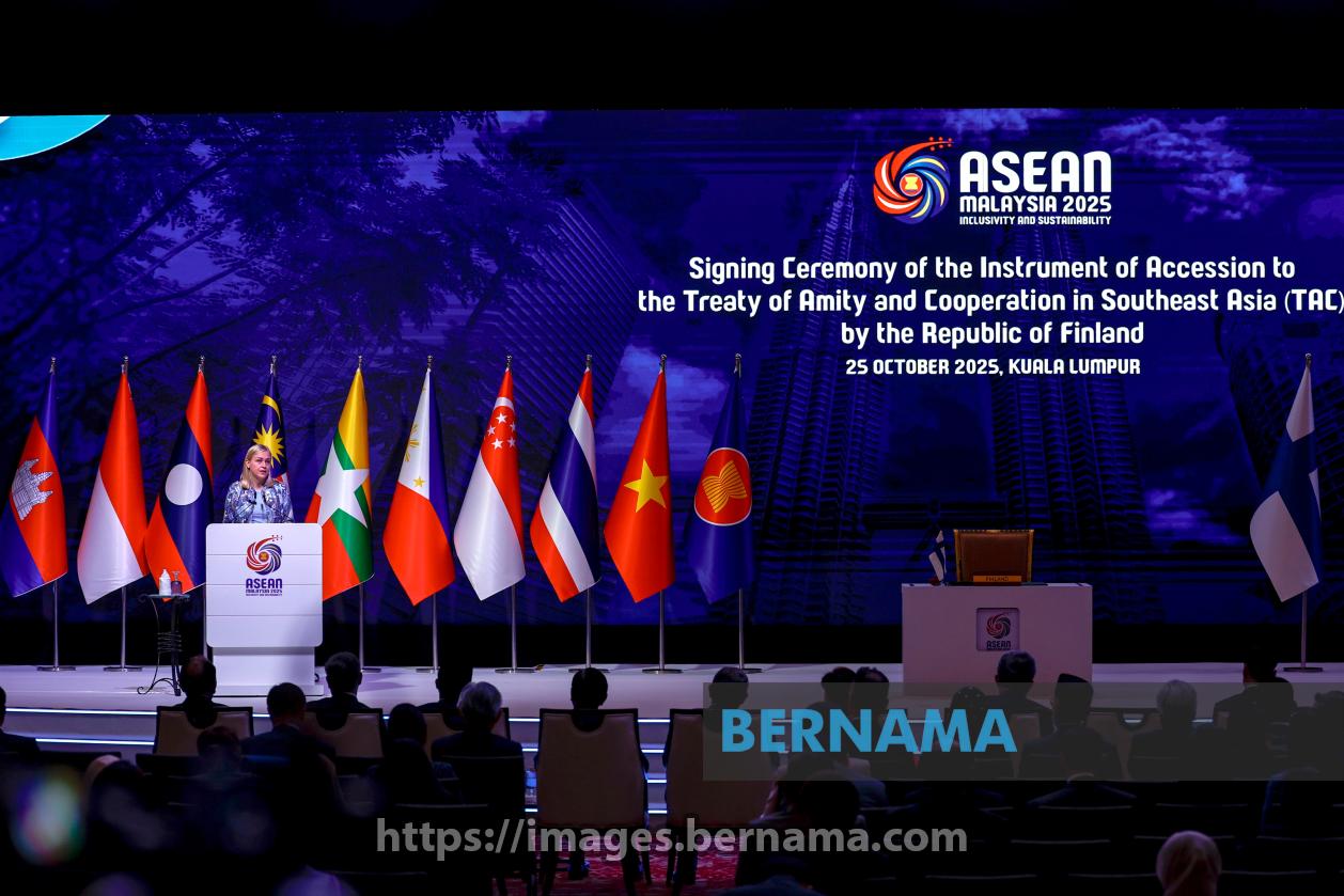 KUALA LUMPUR, Oct 25 -- Finland' s Foreign Minister Elina Valtonen delivers her speech during the signing ceremony of the Instrument of Accession to the Treaty of Amity and Cooperation in Southeast Asia (TAC) by the Finland, on the sidelines of the 47th ASEAN Summit and related summits at the Kuala Lumpur Convention Centre (KLCC) today.