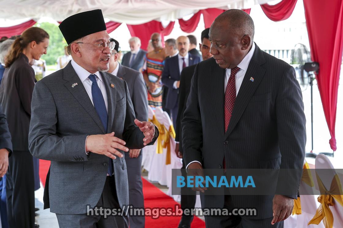 PUTRAJAYA, 25 Okt -- Perdana Menteri, Datuk Seri Anwar Ibrahim, menyambut Presiden Afrika Selatan, Matamela Cyril Ramaphosa, yang melakukan lawatan rasmi ke Malaysia, pada sambutan rasmi di Kompleks Perdana Putra hari ini.