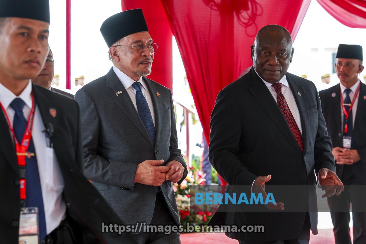 PUTRAJAYA, 25 Okt -- Perdana Menteri, Datuk Seri Anwar Ibrahim, menyambut Presiden Afrika Selatan, Matamela Cyril Ramaphosa, yang melakukan lawatan rasmi ke Malaysia, pada sambutan rasmi di Kompleks Perdana Putra hari ini.