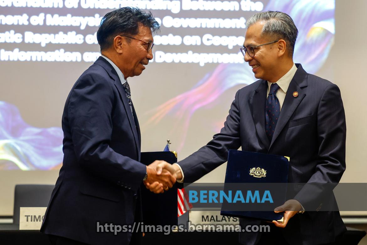 KUALA LUMPUR, Oct 25 -- Malaysian Communications Minister Datuk Fahmi Fadzil (right) shakes hands with Timor-Leste Transport and Communications Minister Miguel Marques Gonçalves Manetelu after the signing ceremony of the Memoranda of Understandings (MOU) between Malaysia and Timor-Leste at Pullman Kuala Lumpur here today.