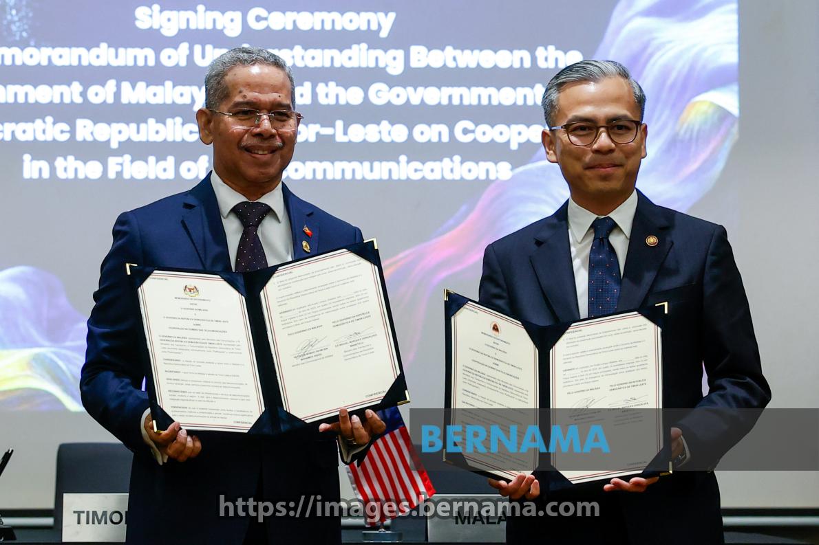 KUALA LUMPUR, Oct 25 -- Malaysian Communications Minister Datuk Fahmi Fadzil and Timor-Leste's Transport and Communications Minister Miguel Gonçalves Manetelu display their Memorandum of Understanding (MOU) on information and media development at the signing ceremony at Pullman Kuala Lumpur today.