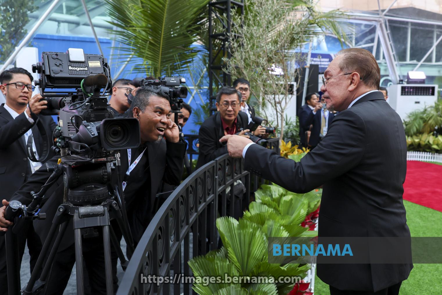 KUALA LUMPUR, 26 Okt –- Perdana Menteri Datuk Seri Anwar Ibrahim (kanan) bermesra dengan petugas media yang menanti ketibaan pemimpin dunia dan ASEAN pada Sidang Kemuncak ASEAN ke-47 dan Sidang Berkaitan di Pusat Konvensyen Kuala Lumpur (KLCC) hari ini.