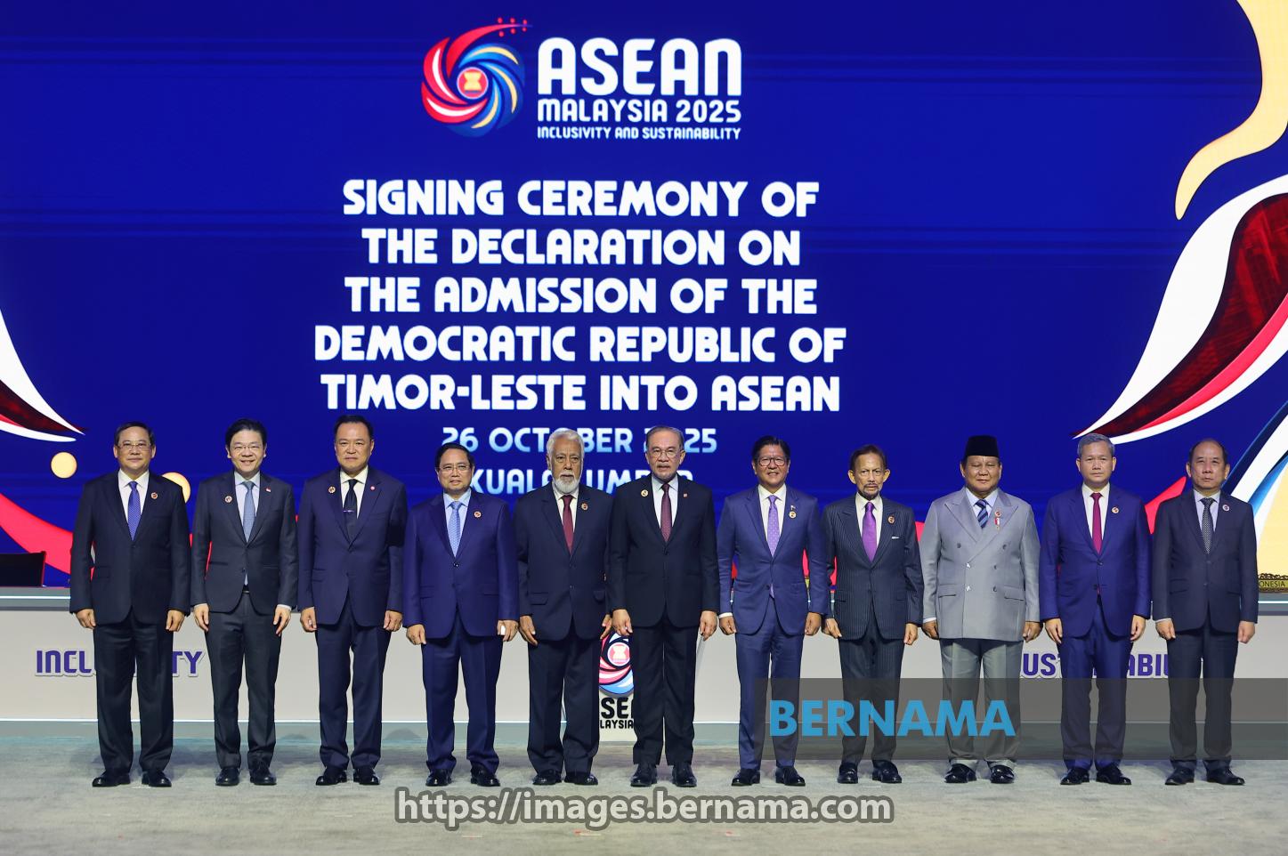 KUALA LUMPUR, Oct 26 -- Prime Minister Datuk Seri Anwar Ibrahim joins ASEAN leaders for a group photo after the signing the Declaration on the Admission of Timor-Leste into ASEAN during the opening of the 47th ASEAN Summit and Related Summits at the Kuala Lumpur Convention Centre today.