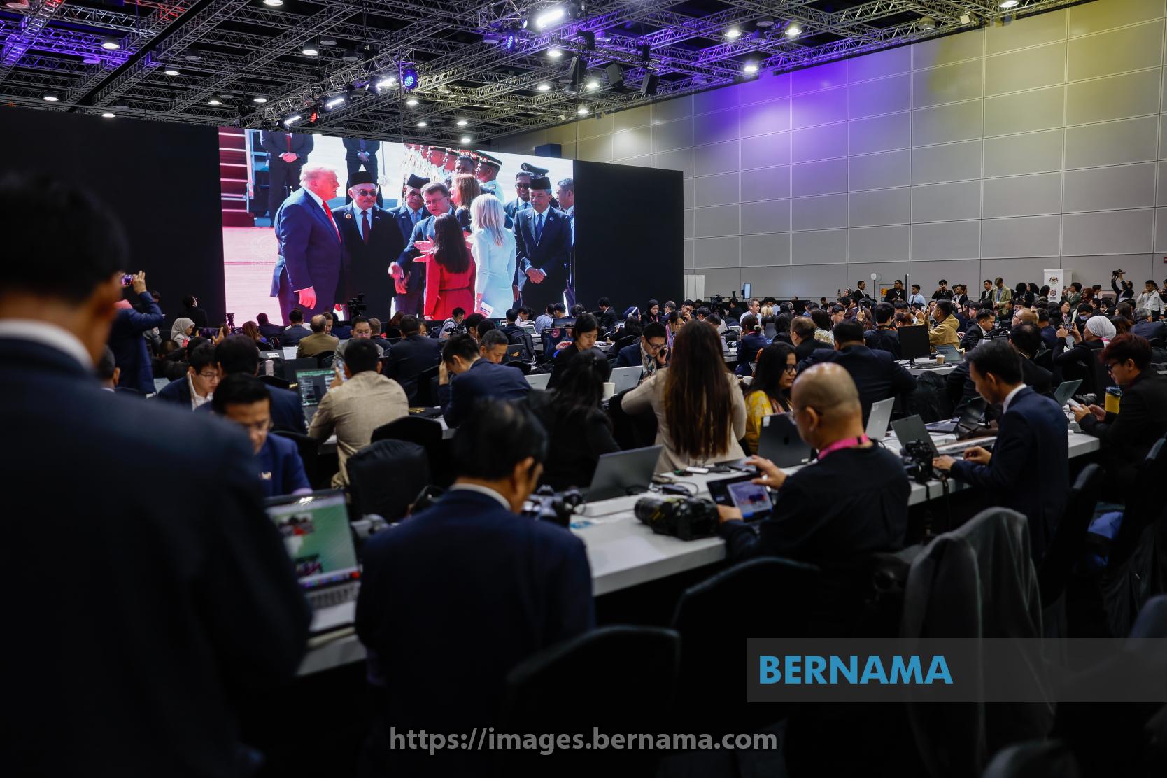 KUALA LUMPUR, Oct 26 -- Members of the media watch a live broadcast of the arrival of United States President Donald Trump, who was welcomed by Prime Minister Datuk Seri Anwar Ibrahim, in conjunction with the 47th ASEAN Summit and Related Summits at the Kuala Lumpur Convention Centre today.