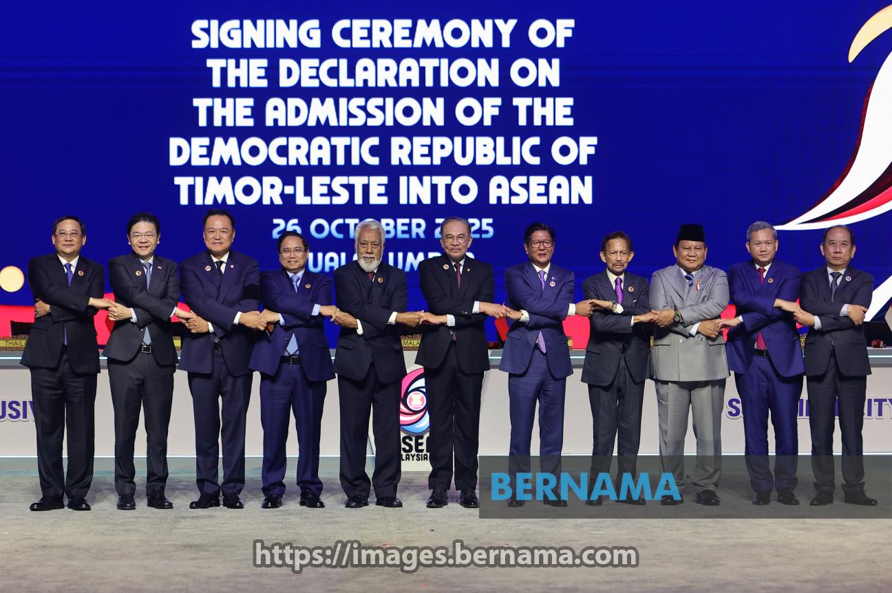 KUALA LUMPUR, Oct 26 -- Prime Minister Datuk Seri Anwar Ibrahim joins ASEAN leaders for a group photo after the signing the Declaration on the Admission of Timor-Leste into ASEAN during the opening of the 47th ASEAN Summit and Related Summits at the Kuala Lumpur Convention Centre today.