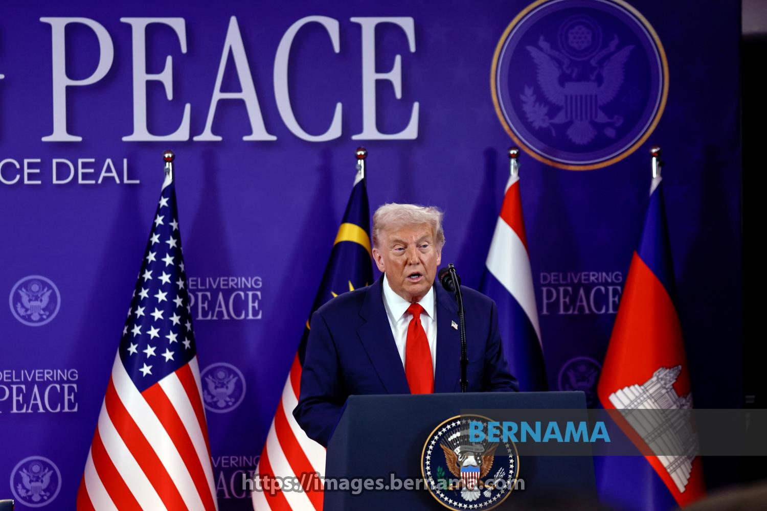 KUALA LUMPUR, Oct 26 -- United States President Donald Trump delivers his speech at the signing ceremony of the peace agreement, "Delivering Peace: Cambodia–Thailand Peace Deal," in conjunction with the 47th ASEAN Summit and Related Summits today.