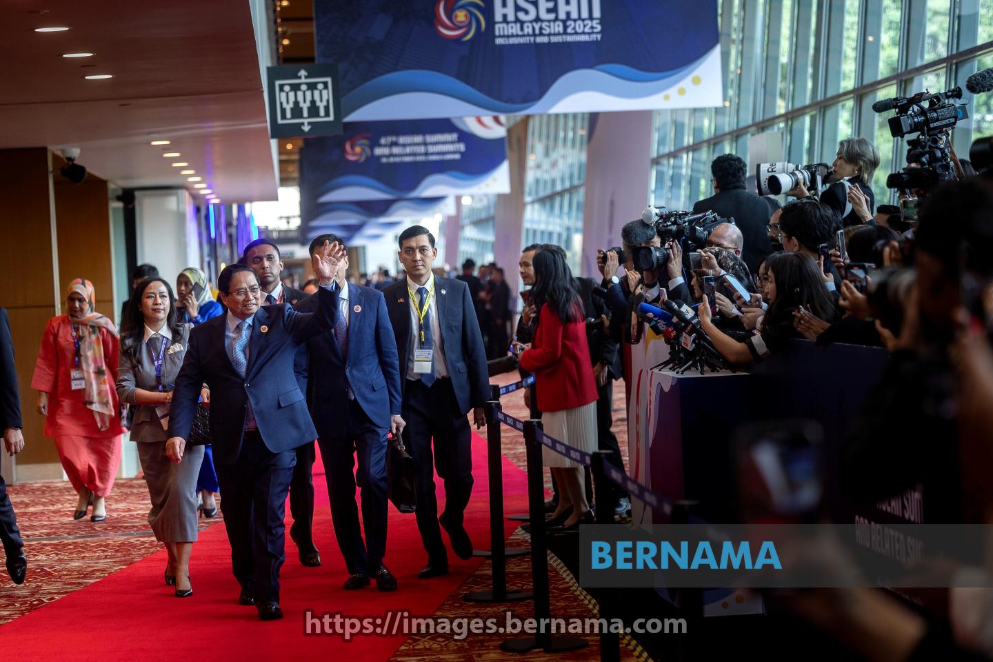 KUALA LUMPUR, Oct 26 — Vietnamese Prime Minister Pham Minh Chinh waves to media after attending the plenary session of the 47th ASEAN Summit and Related Summits at the Kuala Lumpur Convention Centre (KLCC) today.
