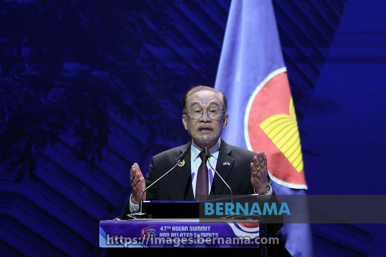 KUALA LUMPUR, Oct 26 -- Prime Minister Datuk Seri Anwar Ibrahim delivers his speech during the signing ceremony of the ASEAN–FIFA Memorandum of Understanding, on the sidelines of the 47th ASEAN Summit and Related Summits at the Kuala Lumpur Convention Centre (KLCC) today.
