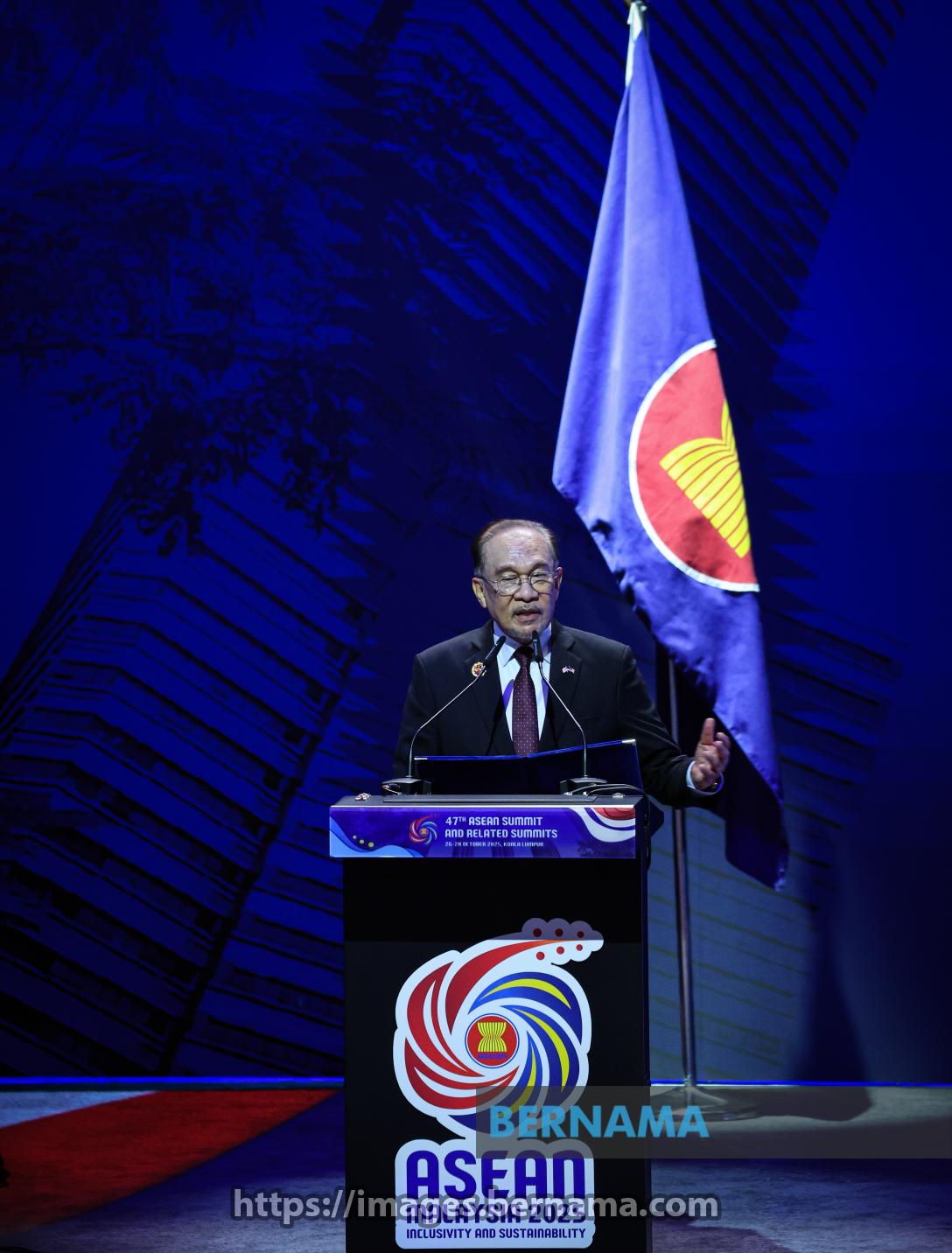 KUALA LUMPUR, Oct 26 — Prime Minister Datuk Seri Anwar Ibrahim delivers his speech during the signing ceremony of the ASEAN–FIFA Memorandum of Understanding, on the sidelines of the 47th ASEAN Summit and Related Summits at the Kuala Lumpur Convention Centre (KLCC) today.