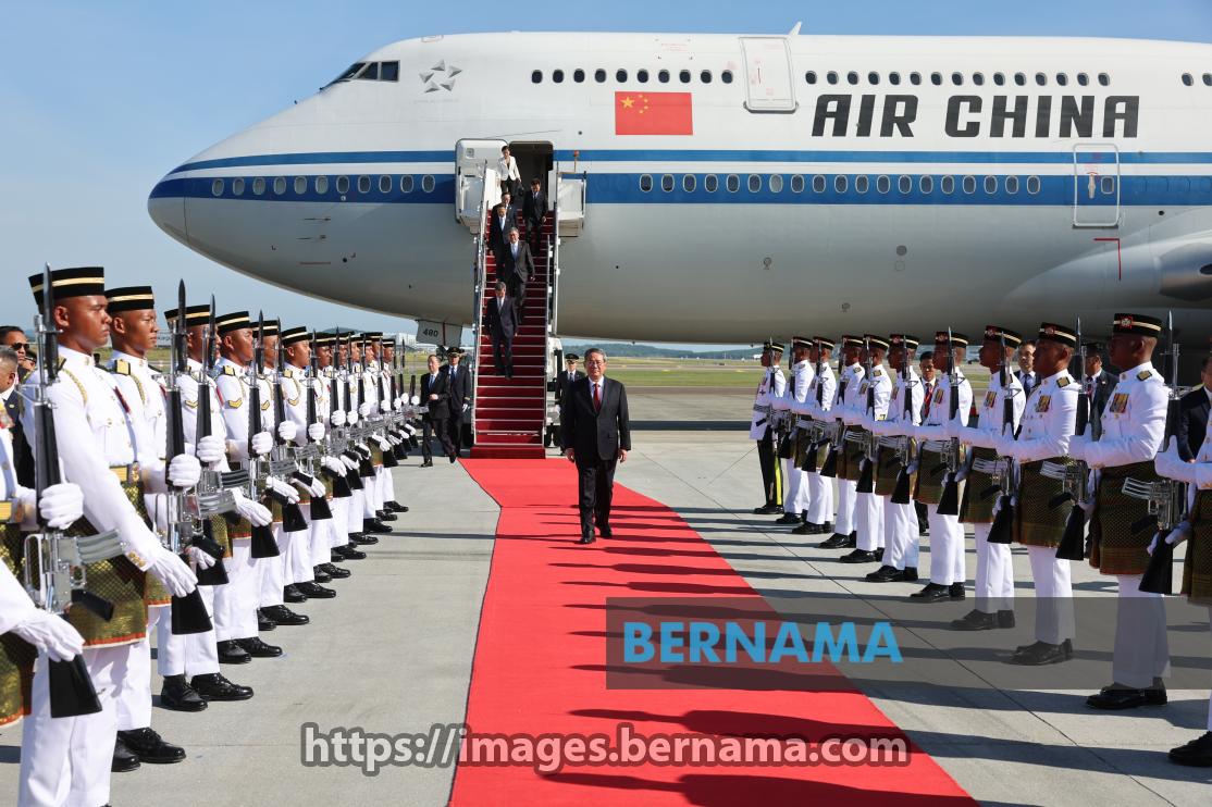 Li inspected a guard of honour comprising 28 officers and personnel from the First Battalion of the Royal Malay Regiment.