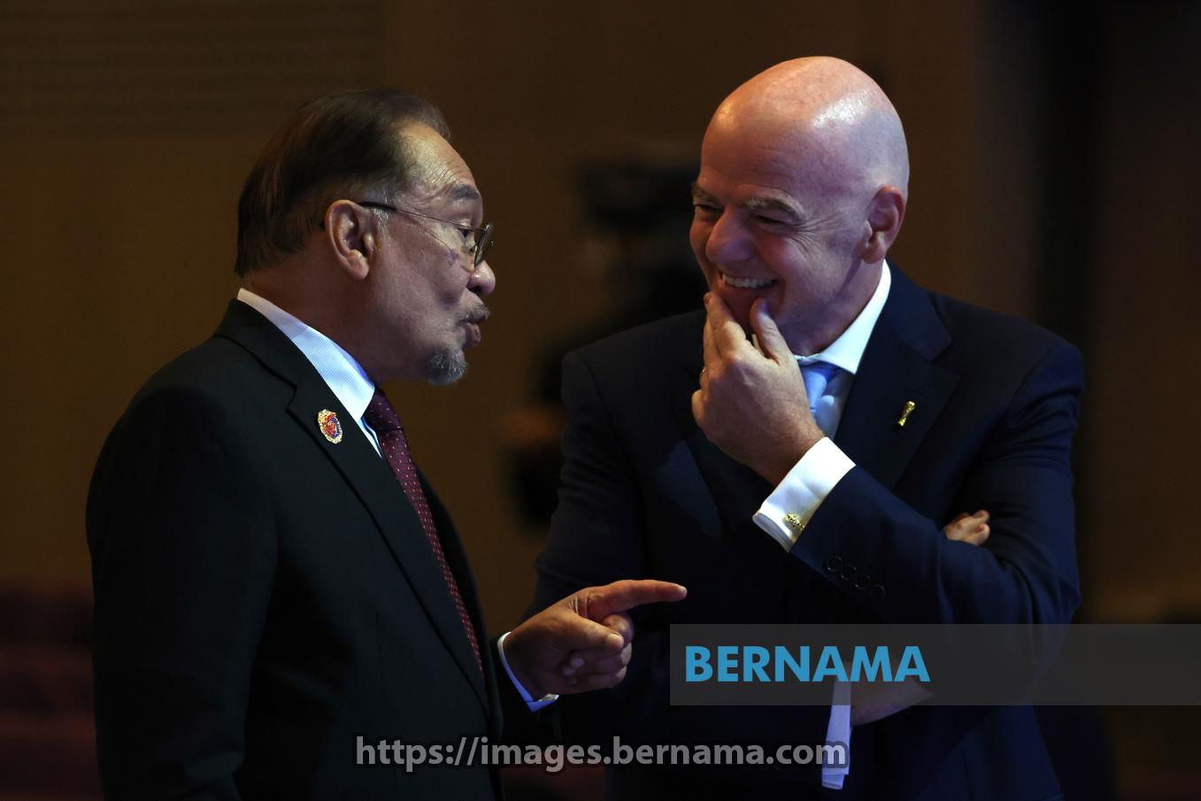 KUALA LUMPUR, Oct 26 -- Prime Minister Datuk Seri Anwar Ibrahim shares a friendly moment with FIFA President Gianni Infantino during the signing ceremony of the ASEAN–FIFA Memorandum of Understanding,on sidelines of the 47th ASEAN Summit and Related Summits at the Kuala Lumpur Convention Centre (KLCC) today.