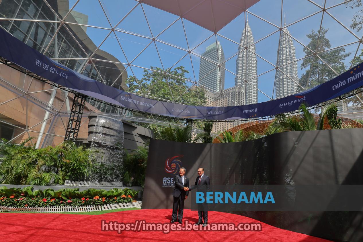 KUALA LUMPUR, 27 Okt -- Perdana Menteri Datuk Seri Anwar Ibrahim (kanan) menyambut mesra Perdana Menteri China, Li Qiang pada Sidang Kemuncak ASEAN ke-47 dan Sidang Kemuncak Berkaitan di Pusat Konvensyen Kuala Lumpur (KLCC) hari ini.