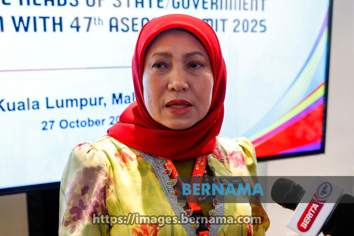 KUALA LUMPUR, Oct 27 -- Minister of Women, Family and Community Development Datuk Seri Nancy Shukri speaks during a press conference after the Spouses' Programme Carcosa Seri Negara in conjunction with the 47th ASEAN Summit and Related Summits at the Kuala Lumpur Convention Centre today.